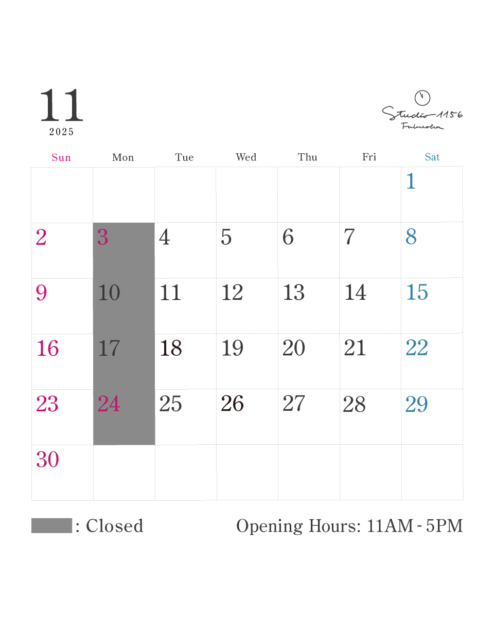 今月の営業日カレンダー