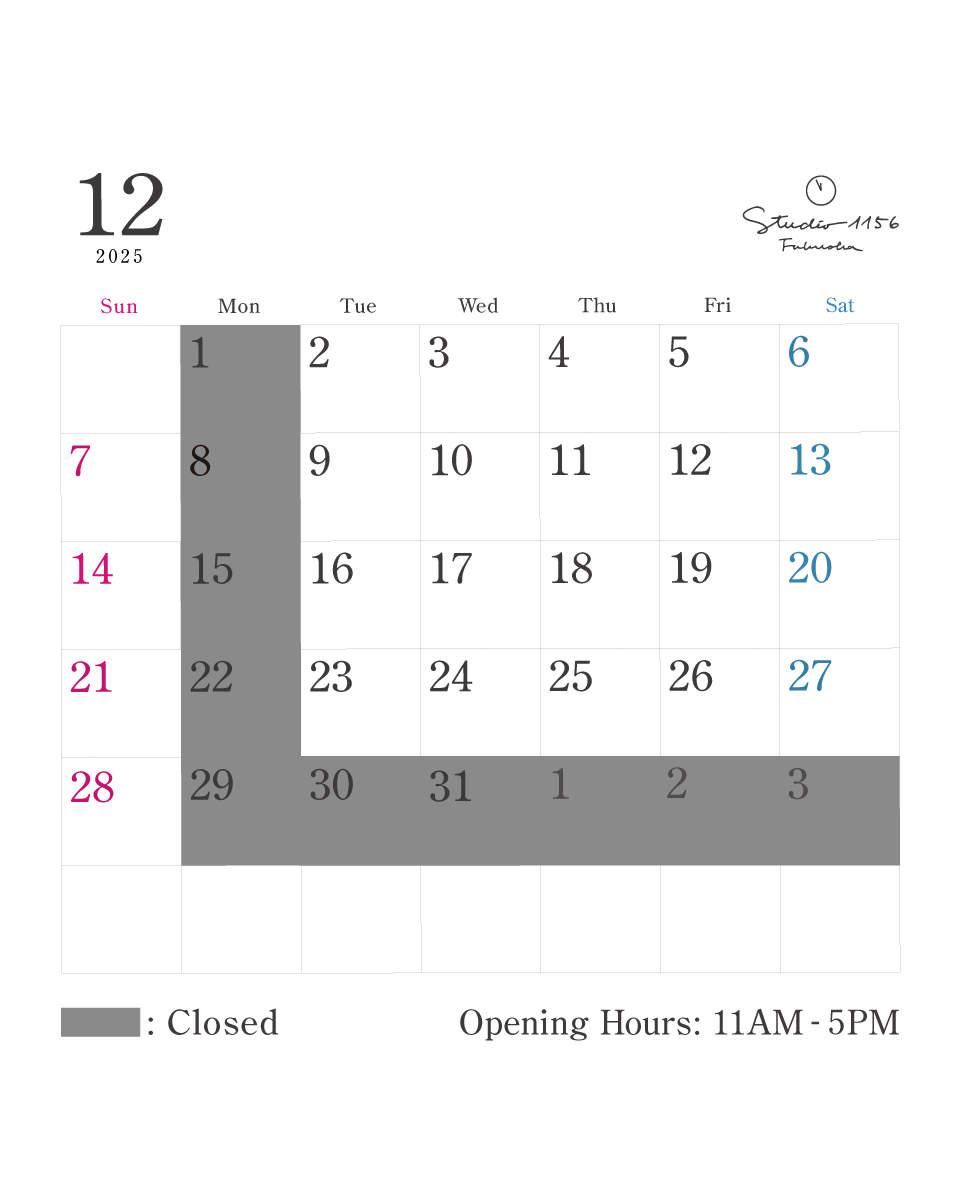 今月の営業日カレンダー