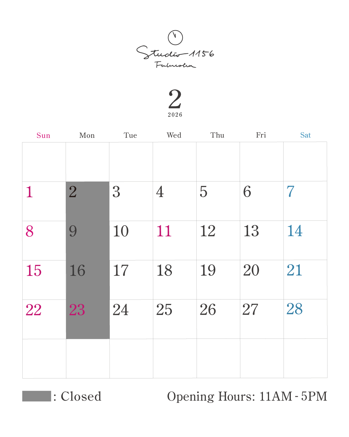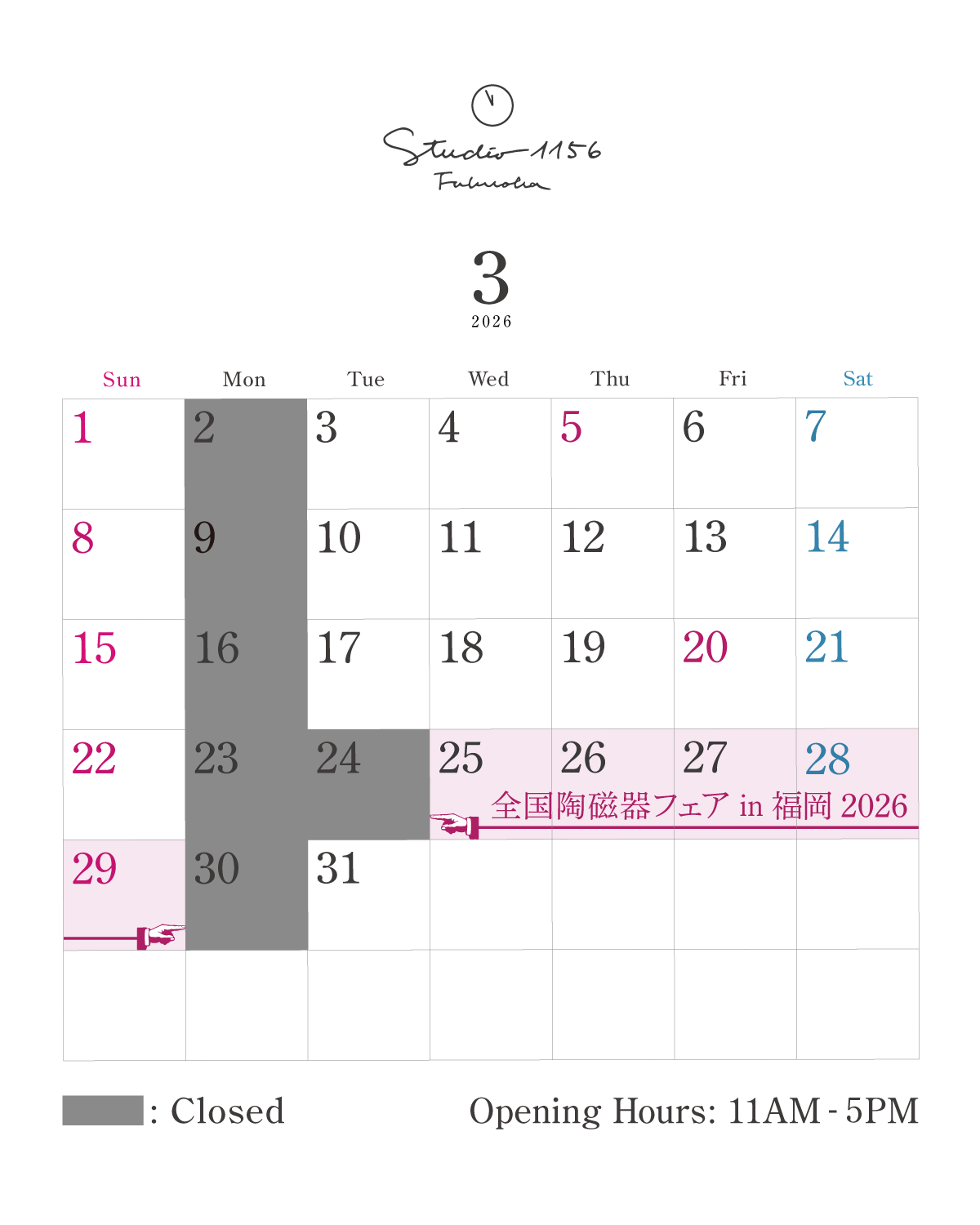 今月の営業日カレンダー