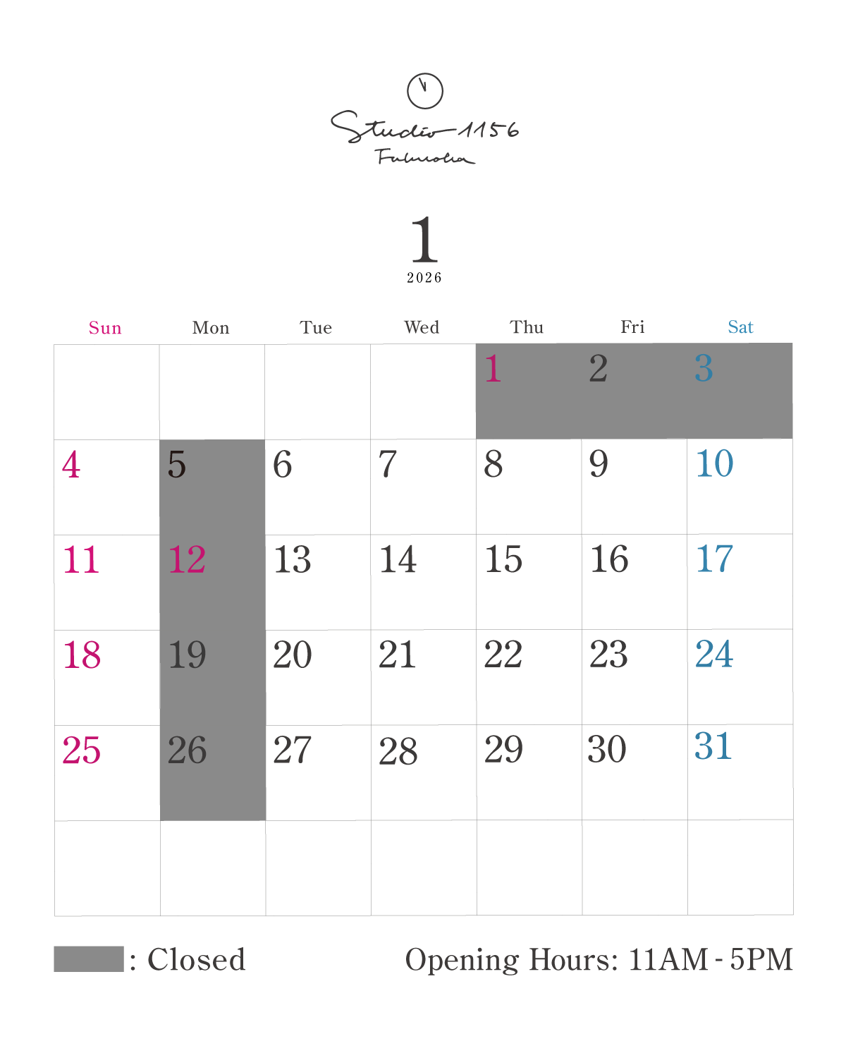今月の営業日カレンダー