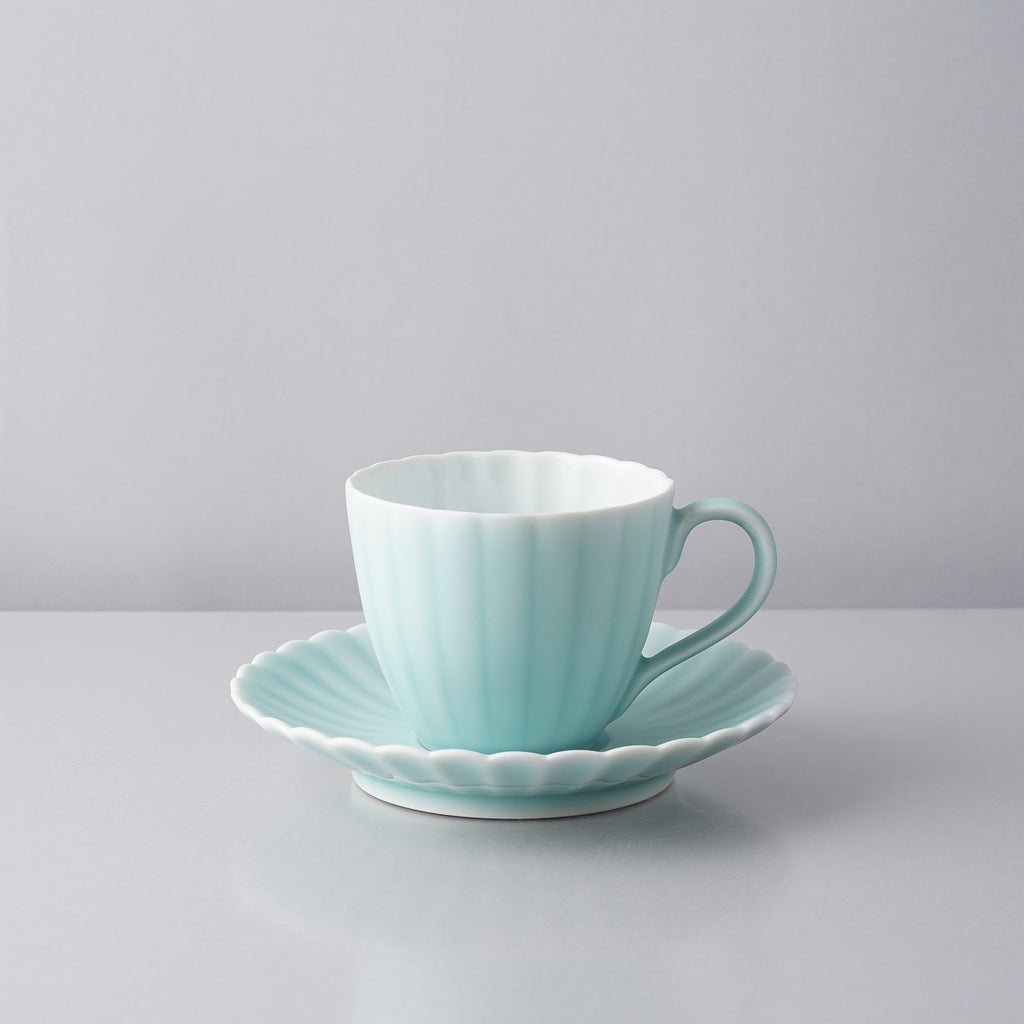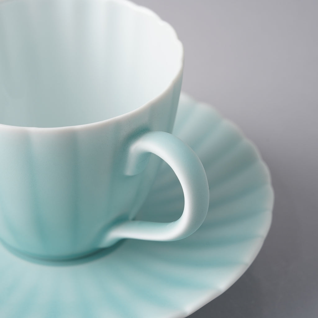 畑萬陶苑 モイスト青磁 菊割 コーヒーカップソーサー 240ml