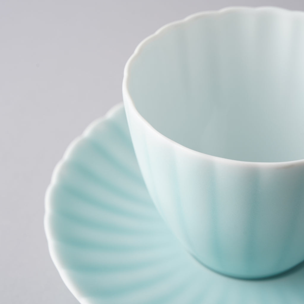 他店では「モイスト青磁 菊割珈琲碗皿」と記載される場合もございます |
