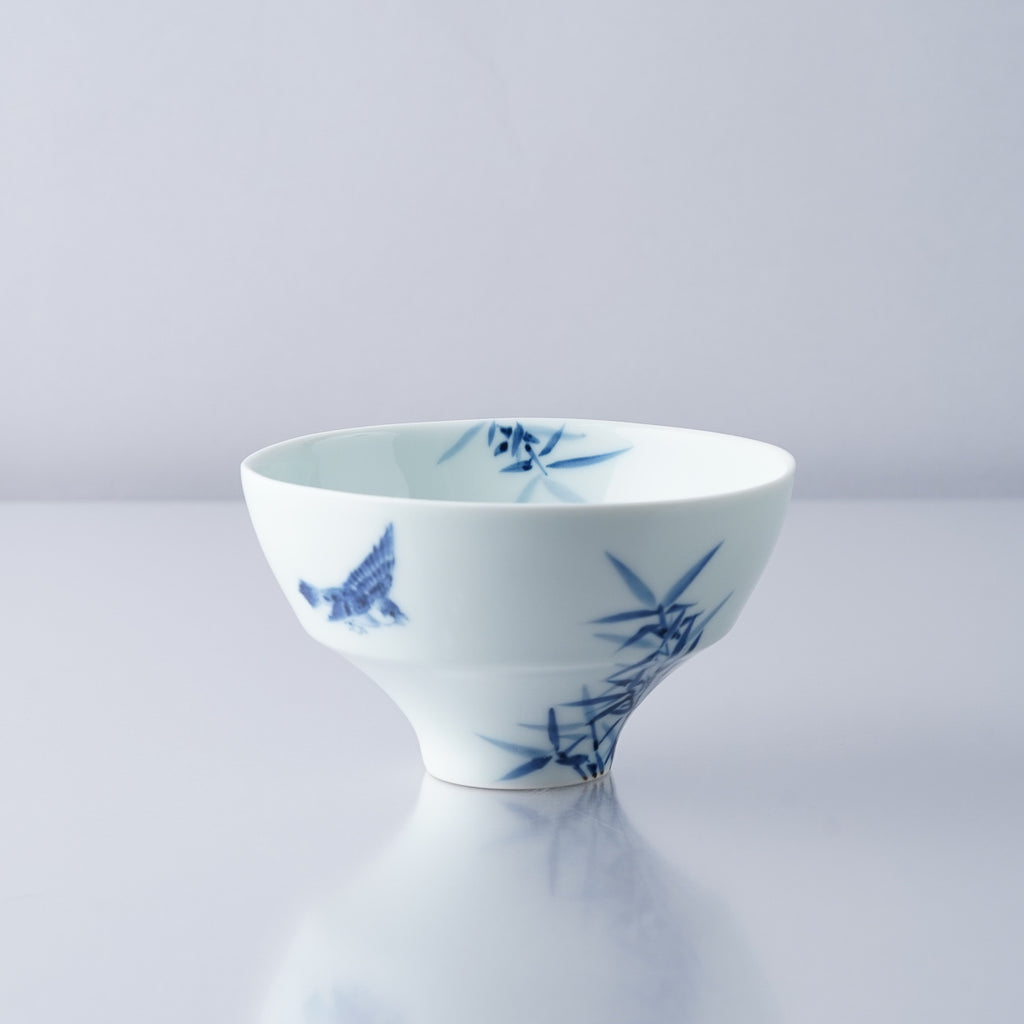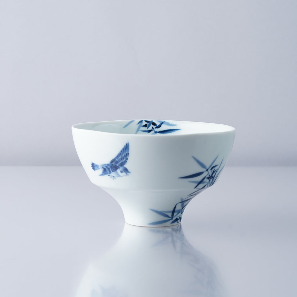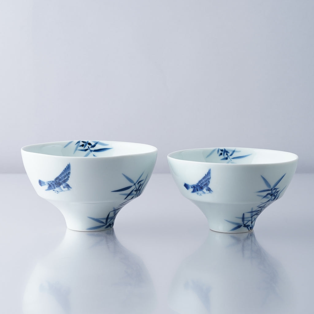 李荘窯 染付竹雀紋 ご飯茶碗(大/小) 夫婦茶碗